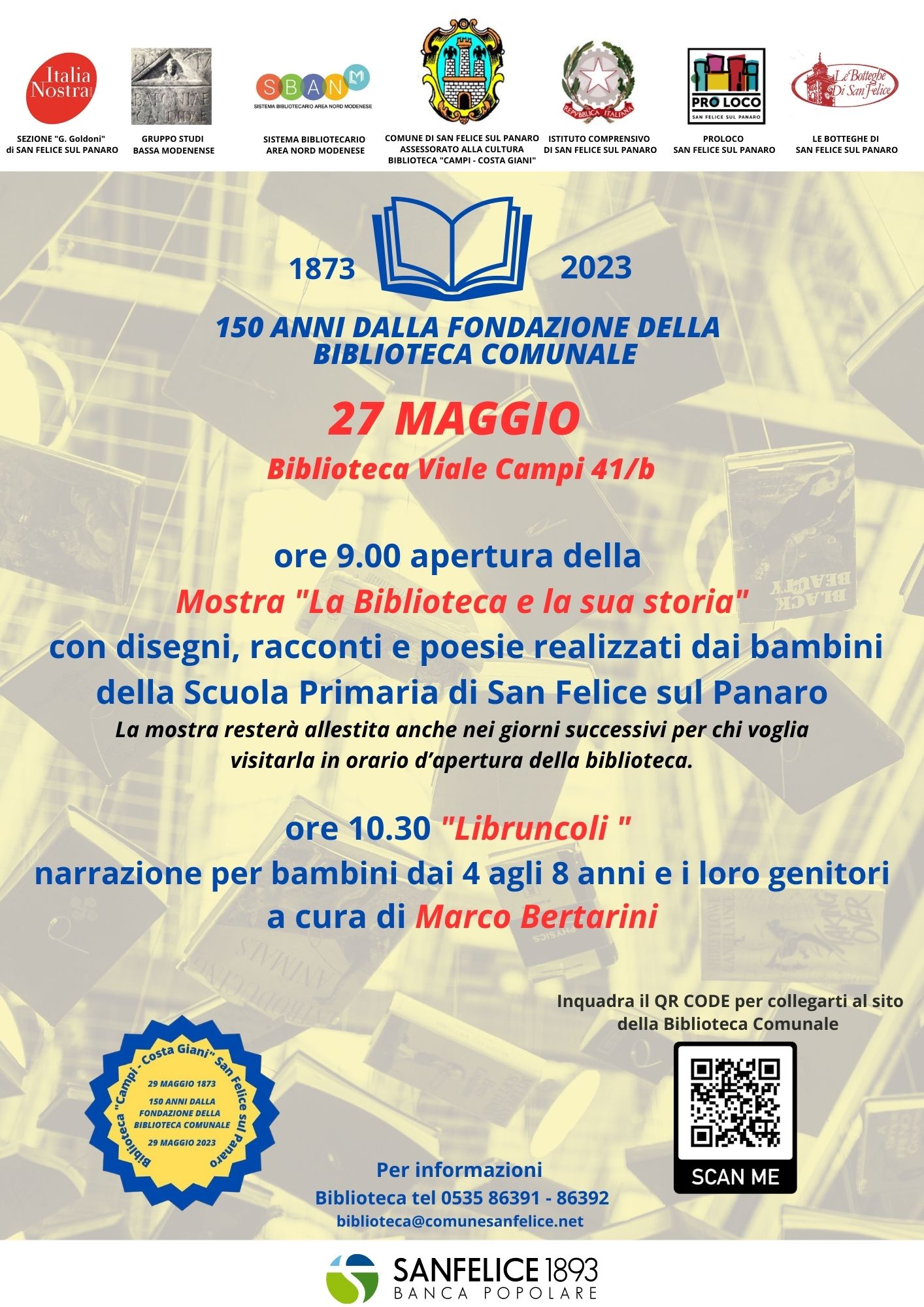 29 MAGGIO 1873 – 29 MAGGIO 2023: LA BIBLIOTECA DI SAN FELICE SUL PANARO COMPIE 150 ANNI