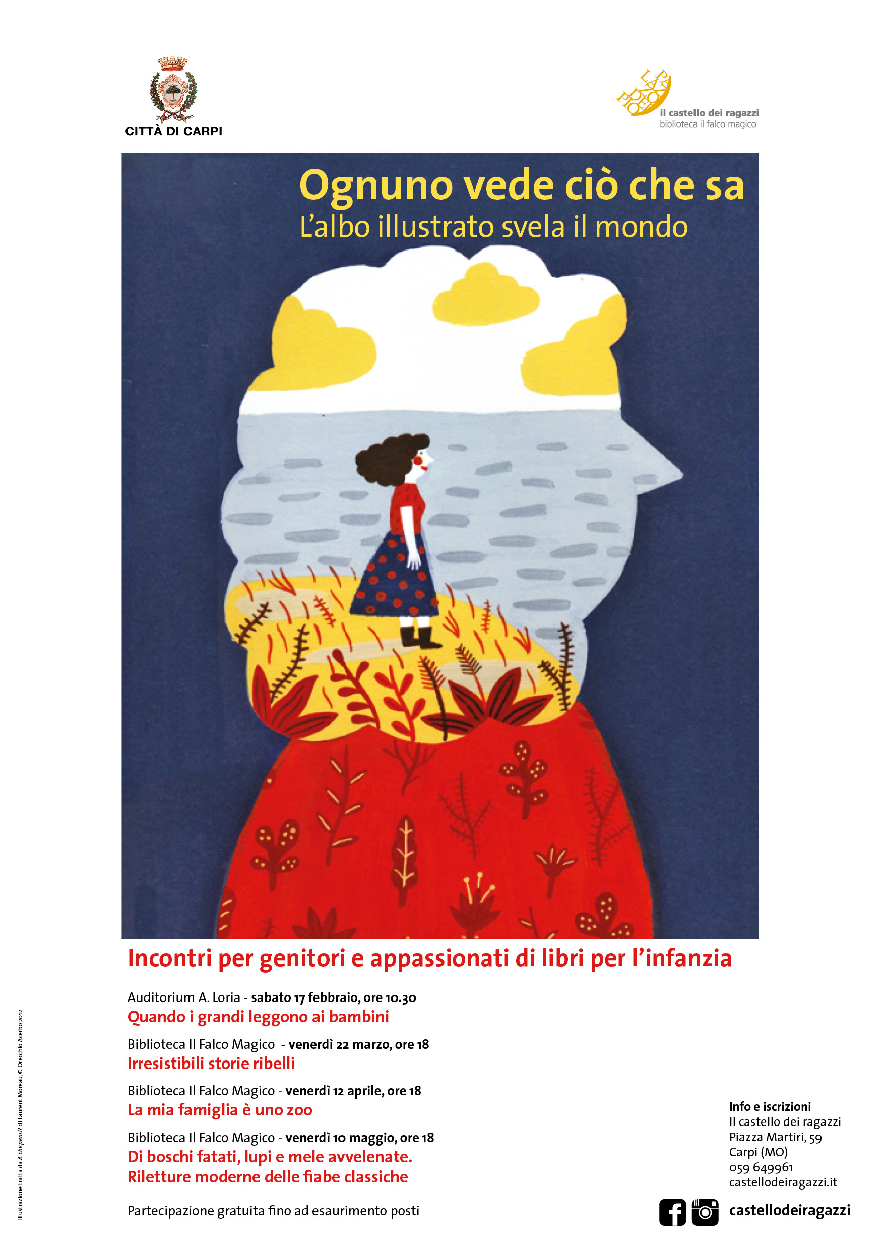 Biblioteca ragazzi Il Falco Magico Irresistibili storie ribelli Storie anticonvenzionali, irriverenti, sfacciate; a volte, disdicevoli; per alcuni, sbagliate. Narrazioni che vanno contro la morale, la buona educazione e le regole ma che, proprio per questo, piacciono tanto ai bambini. I protagonisti mettono in opera egoismi, bugie, contraddizioni e pregiudizi stando sempre in equilibrio tra ironia e irriverenza, perché ‘riderci sopra’ è liberatorio e catartico. venerdì 12 aprile, ore 18.00 La mia famiglia è uno zoo Narrare di famiglie significa narrare di un mondo variegato, ricco e complesso, popolato di parenti, amici e…animali. Gli albi raccontano di genitori amorevoli o inadeguati, partecipi o assenti ma anche di famiglie multiformi e mutanti entro cui si radica la nostra esistenza e che costituiscono il luogo profondo della nostra anima. venerdì 10 maggio, ore 18.00 Di boschi fatati, lupi e mele avvelenate. Riletture moderne delle fiabe classiche Le fiabe hanno ancora molto da raccontare, per questo diversi scrittori ci hanno regalato rivisitazioni e riletture delle versioni classiche. Troviamo capovolgimenti di ruoli, ribaltamento dei punti di vista, inconsuete invenzioni narrative e cambiamenti di trama che suggeriscono ed esplicitano significati insoliti, capaci di generare nei lettori nuove emozioni. |