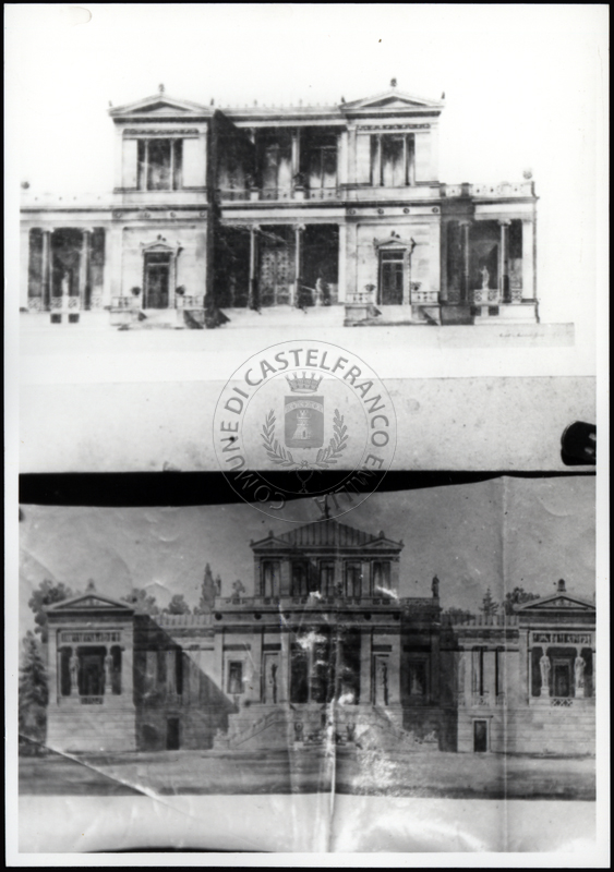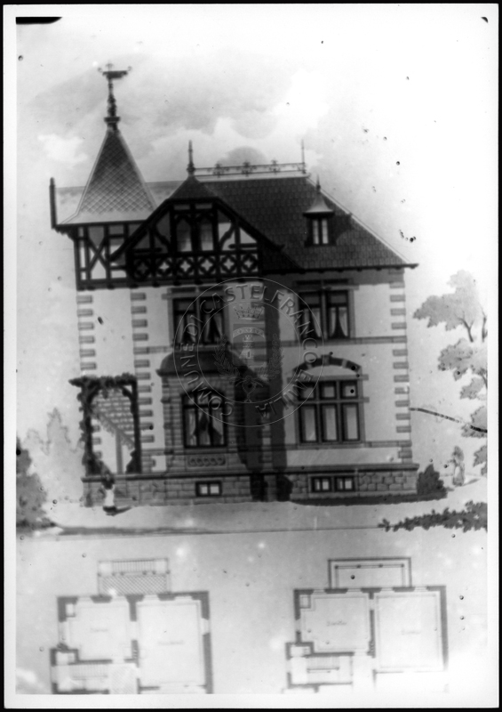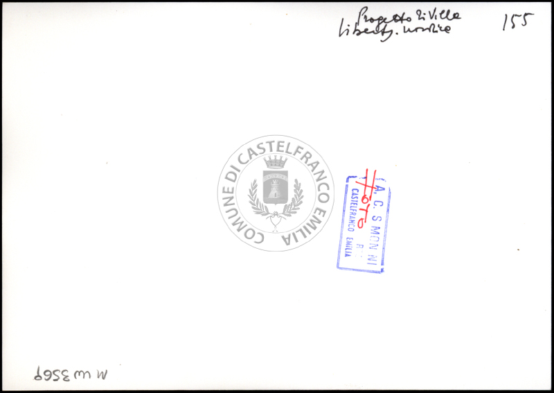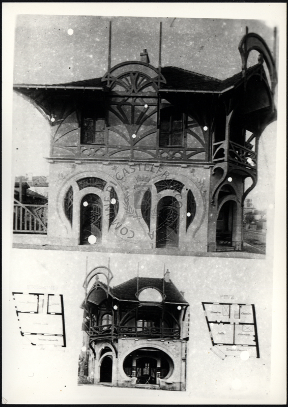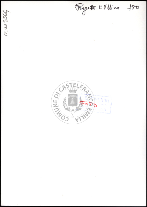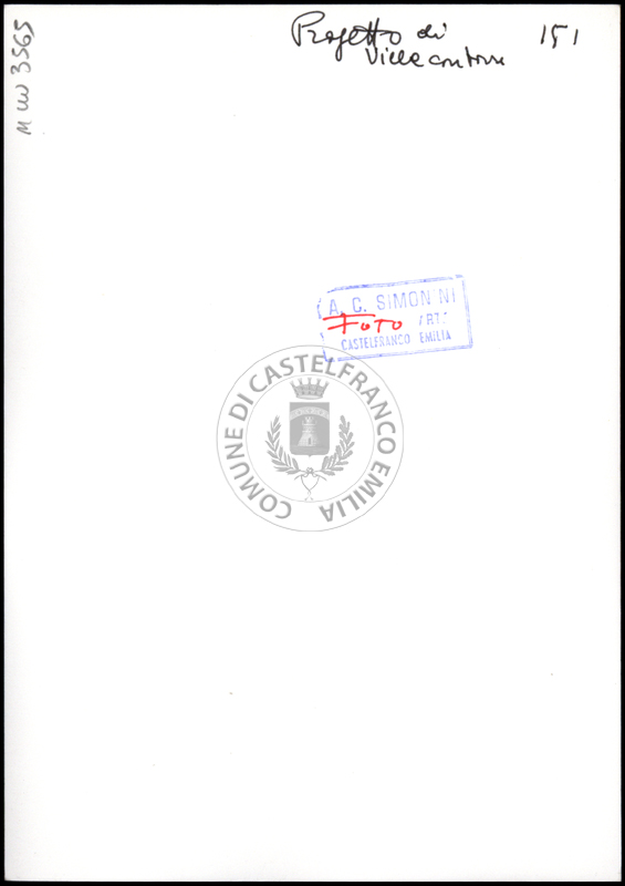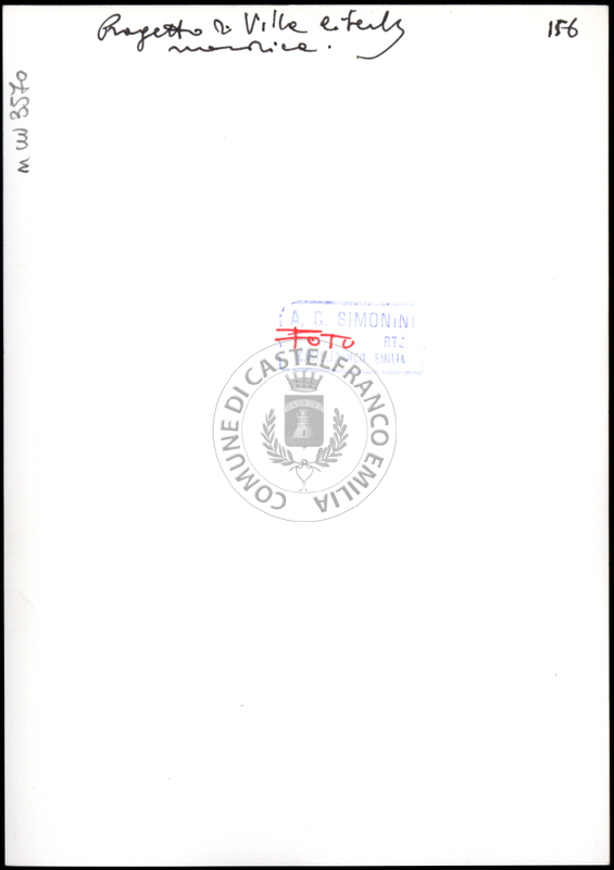 Note e decorazioniSul verso nota manoscritta riporta: 150 Progetto di villino. Sul verso timbro ad inchiostro riporta: A.C. Simonini Arte Castelfranco Emilia. Nota manoscritta dall’Autore della raccolta, all’interno del timbro, riporta: Foto