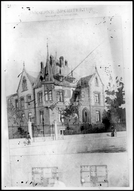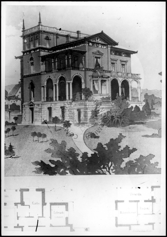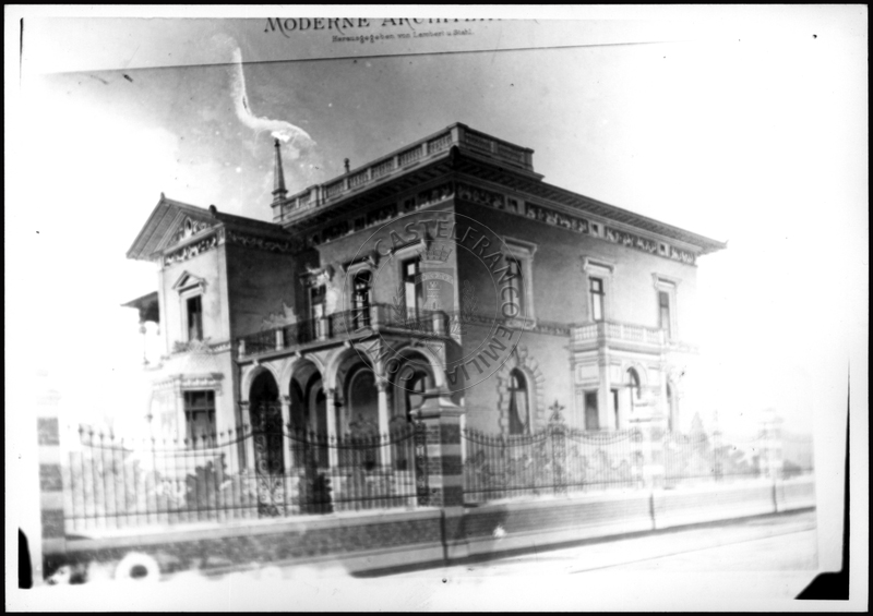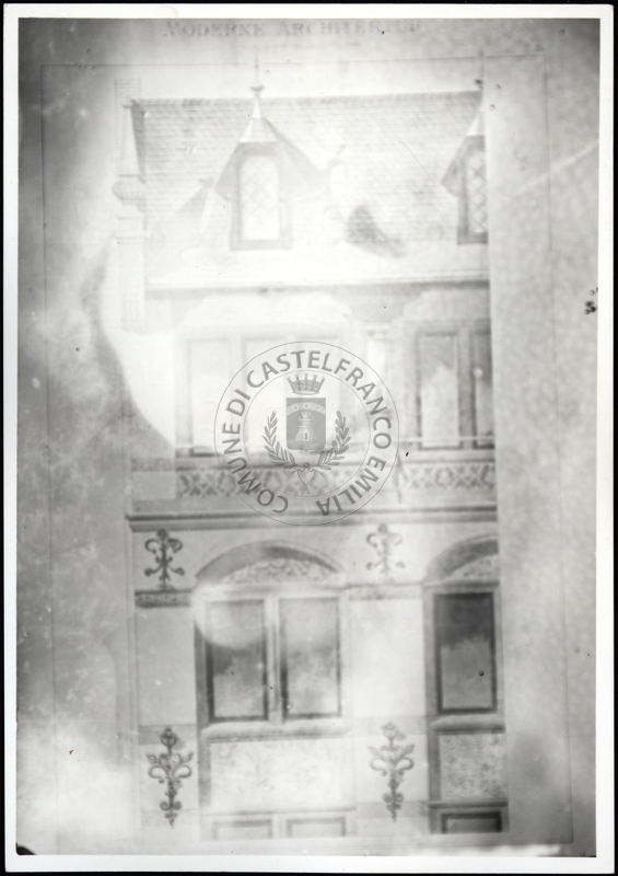 Note e decorazioniSul verso nota manoscritta riporta: 160 progetto di villa da Moderne Architektur. Sul verso timbro ad inchiostro riporta: A.C. Simonini Arte Castelfranco Emilia. Nota manoscritta dall’Autore della raccolta, all’interno del timbro, riporta: Foto