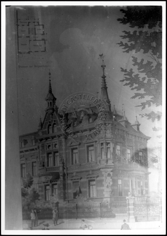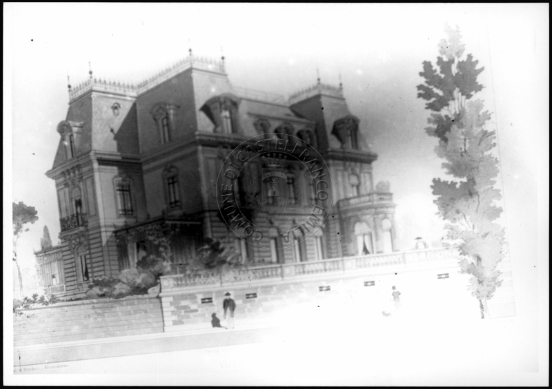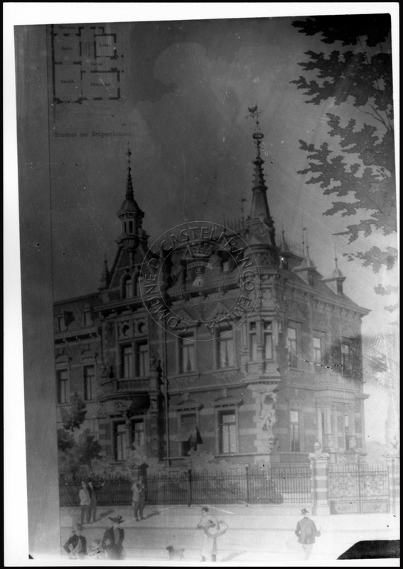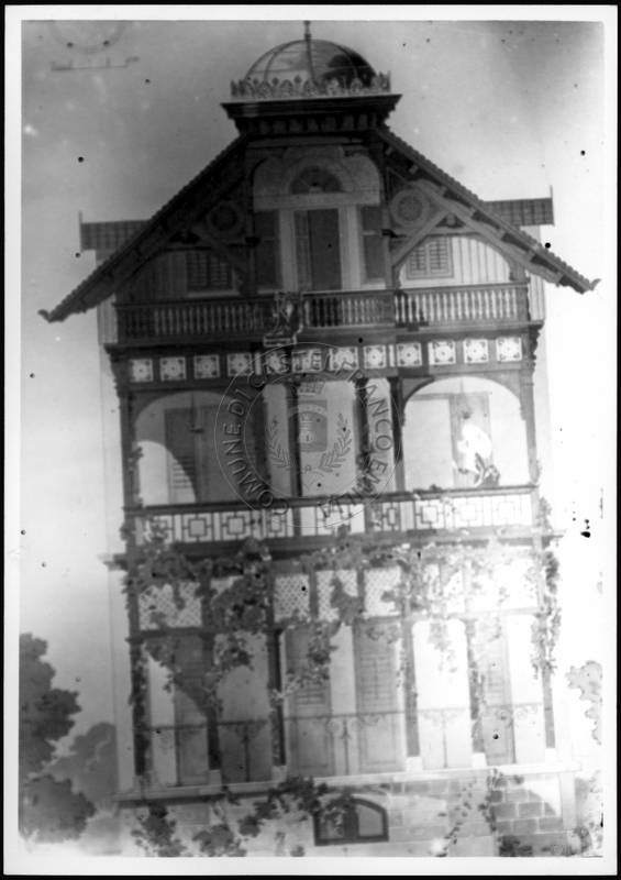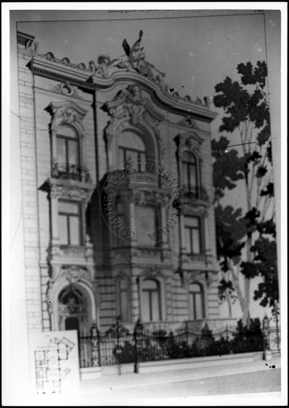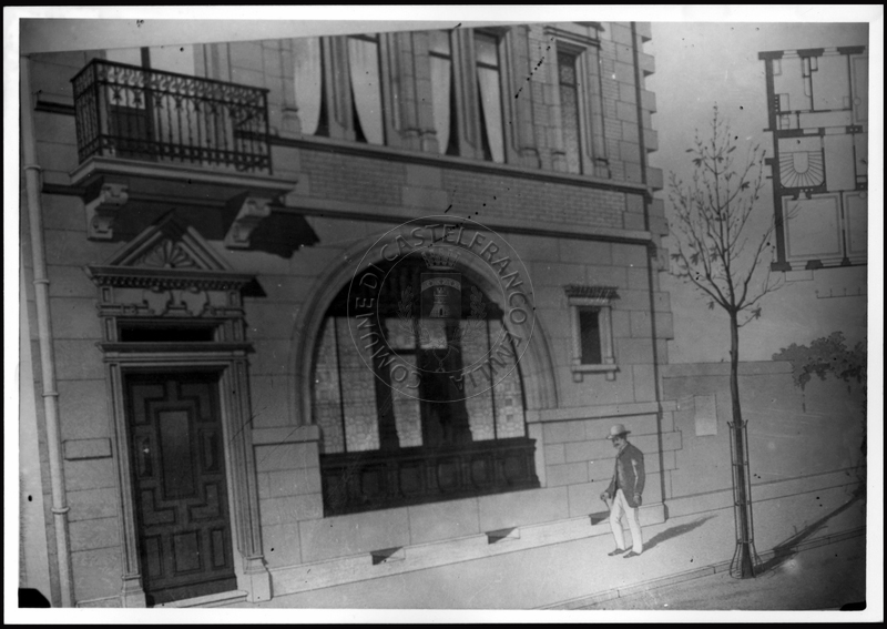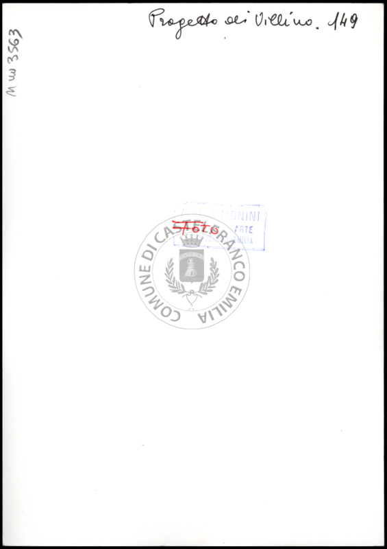 Note e decorazioniSul verso nota manoscritta riporta: 149 Progetto di villino. Sul verso timbro ad inchiostro riporta: A.C. Simonini Arte Castelfranco Emilia. Nota manoscritta dall’Autore della raccolta, all’interno del timbro, riporta: Foto