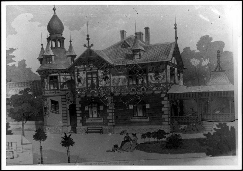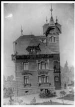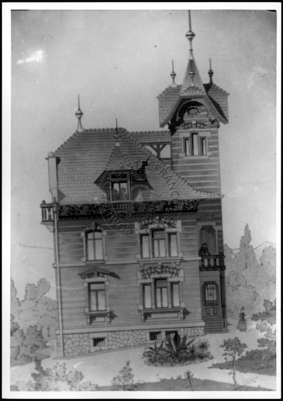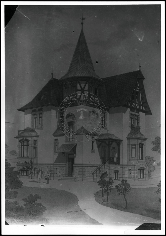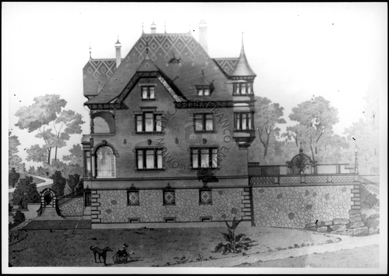 Note e decorazioniSul verso nota manoscritta riporta: 155 Progetto di villa liberty nordica. Sul verso timbro ad inchiostro riporta: A.C. Simonini Arte Castelfranco Emilia. Nota manoscritta dall’Autore della raccolta, all’interno del timbro, riporta: Foto