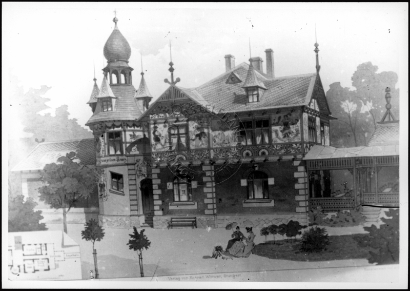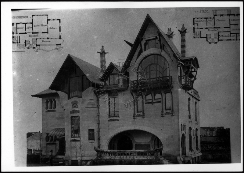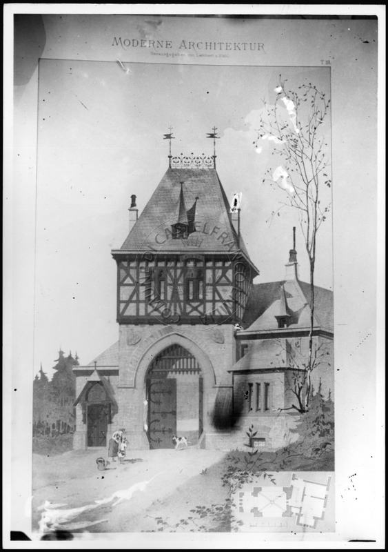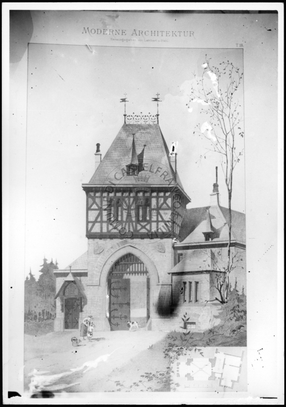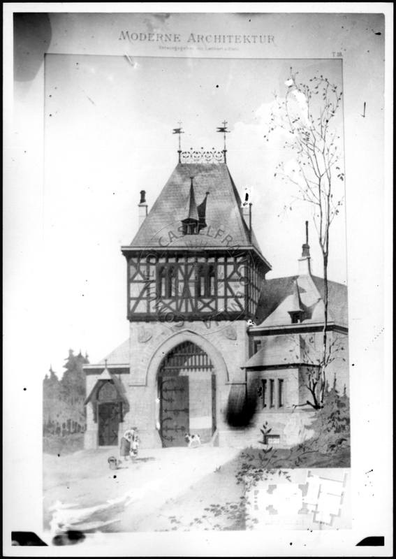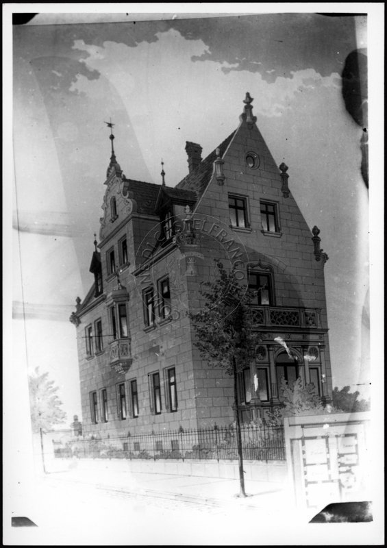 Note e decorazioniSul verso nota manoscritta riporta: 156 Progetto di villa liberty nordica. Sul verso timbro ad inchiostro riporta: A.C. Simonini Arte Castelfranco Emilia. Nota manoscritta dall’Autore della raccolta, all’interno del timbro, riporta: Foto