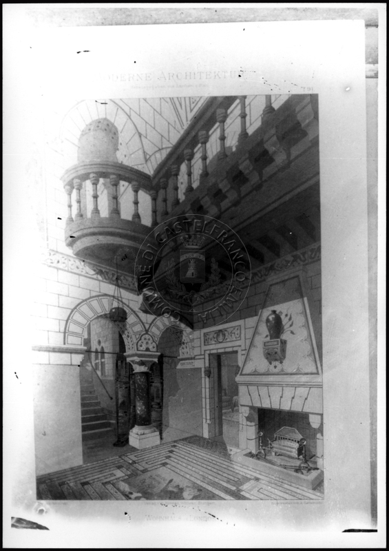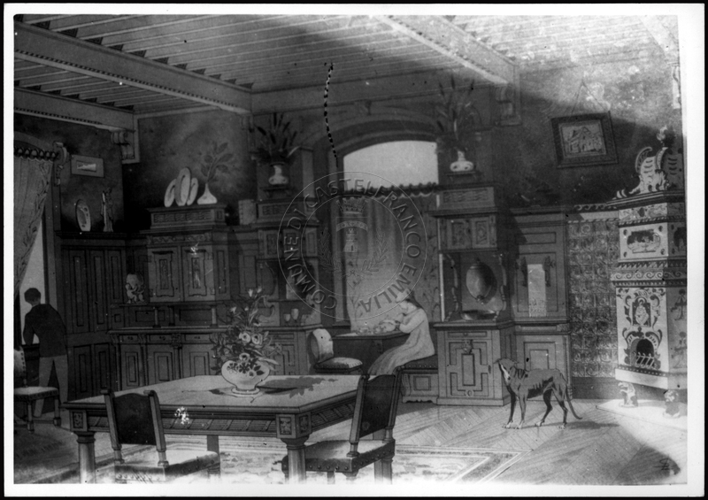 Note e decorazioniSul verso nota manoscritta riporta: 108 Interno liberty ecclettismo. Sul verso timbro ad inchiostro riporta: A.C. Simonini Arte Castelfranco Emilia. Nota manoscritta dall’Autore della raccolta, all’interno del timbro, riporta: Foto.