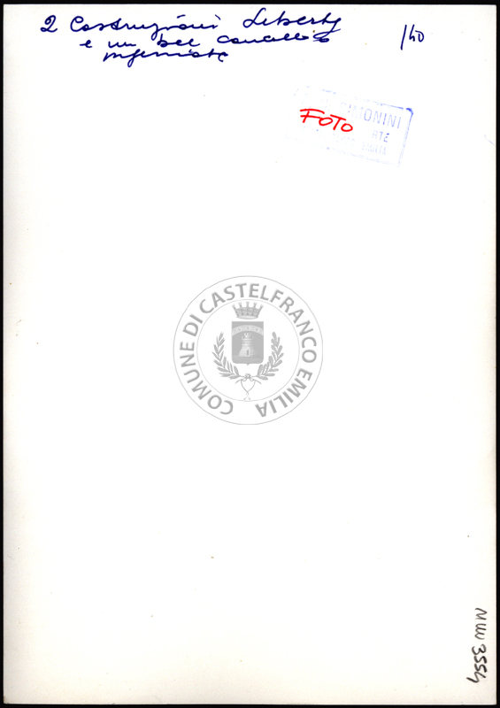Note e decorazioniSul verso nota manoscritta riporta: 140 2 costruzioni Liberty e un bel cancello importante. Sul verso timbro ad inchiostro riporta: A.C. Simonini Arte Castelfranco Emilia. Nota manoscritta dall’Autore della raccolta, all’interno del timbro, riporta: Foto