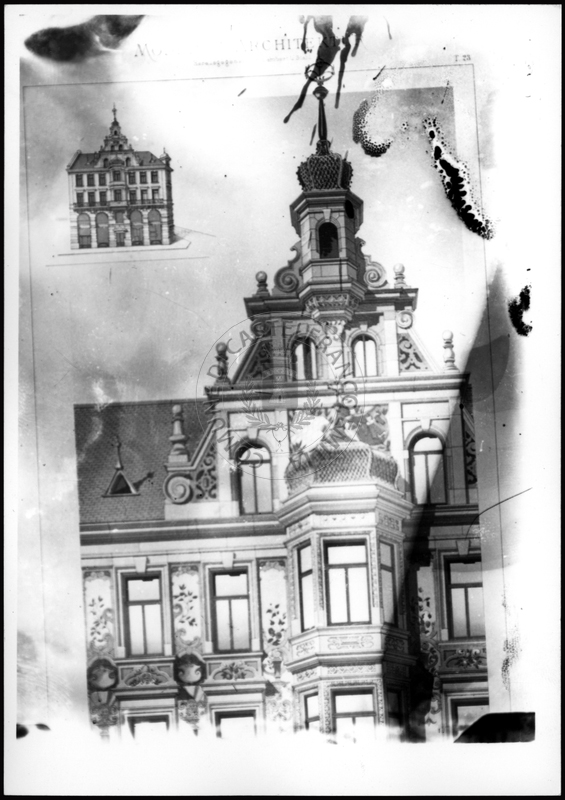 Note e decorazioniSul verso nota manoscritta riporta: 169 Da Moderne Architektur. Sul verso timbro ad inchiostro riporta: A.C. Simonini Arte Castelfranco Emilia. Nota manoscritta dall’Autore della raccolta, all’interno del timbro, riporta: Foto