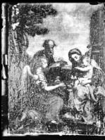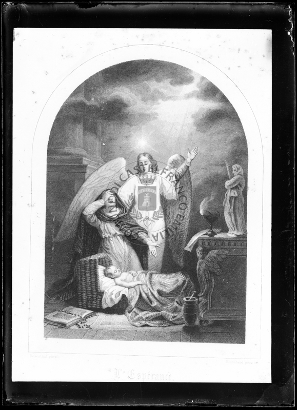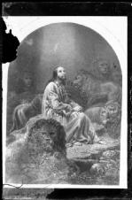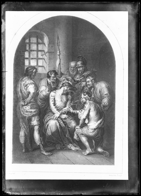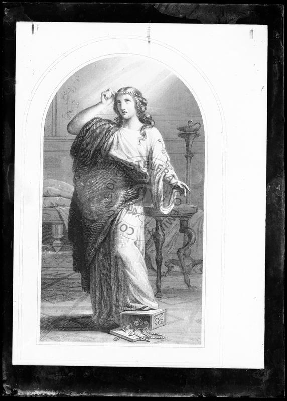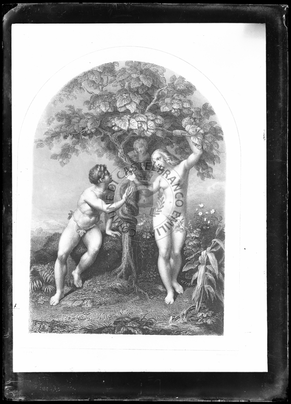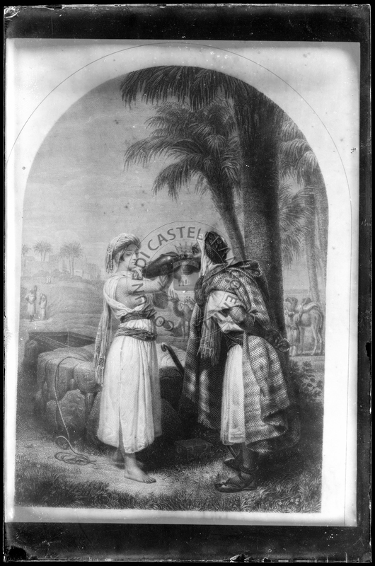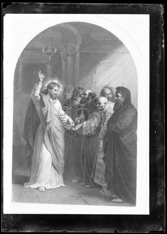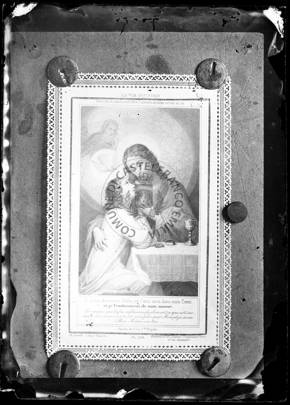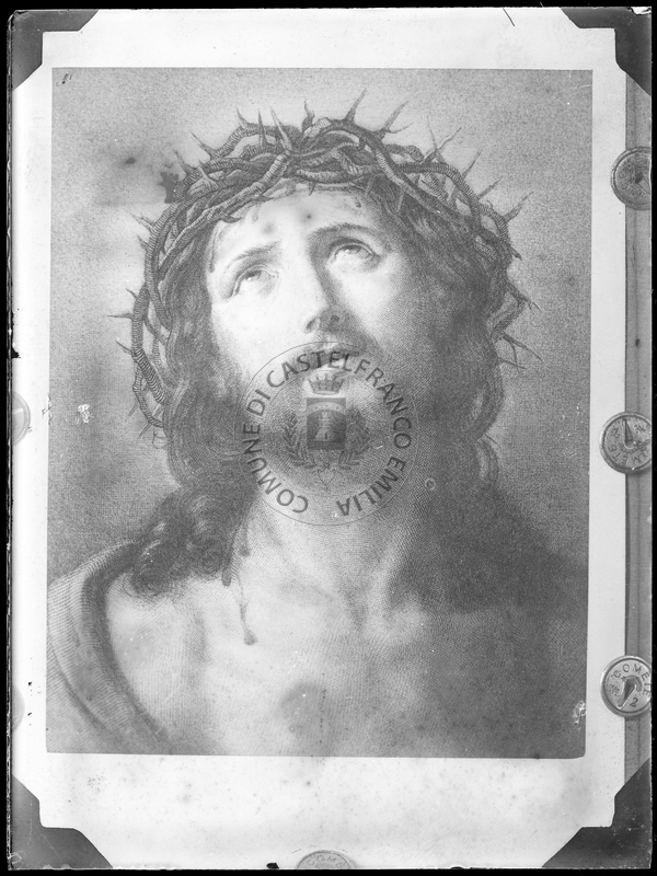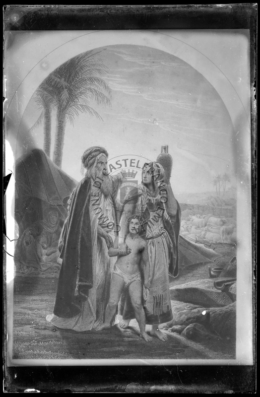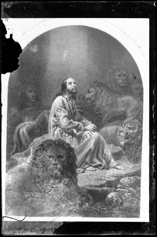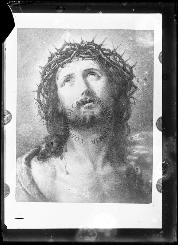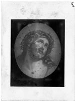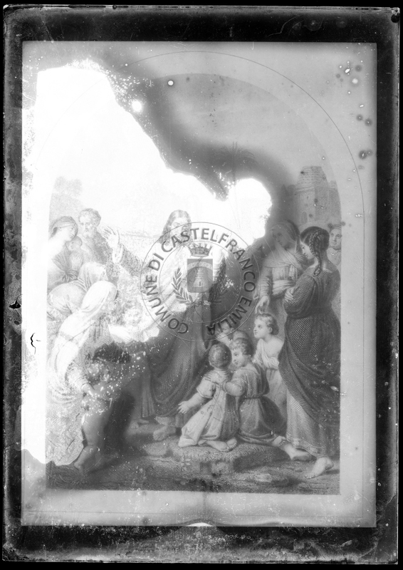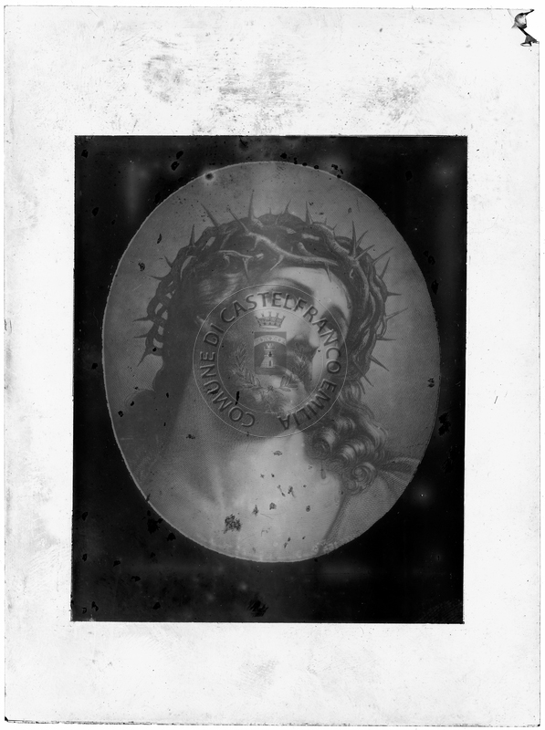 Lastra al collodio, vetro spezzato in modo irregolare, dotata di un fondello nero al quale doveva essere montata.