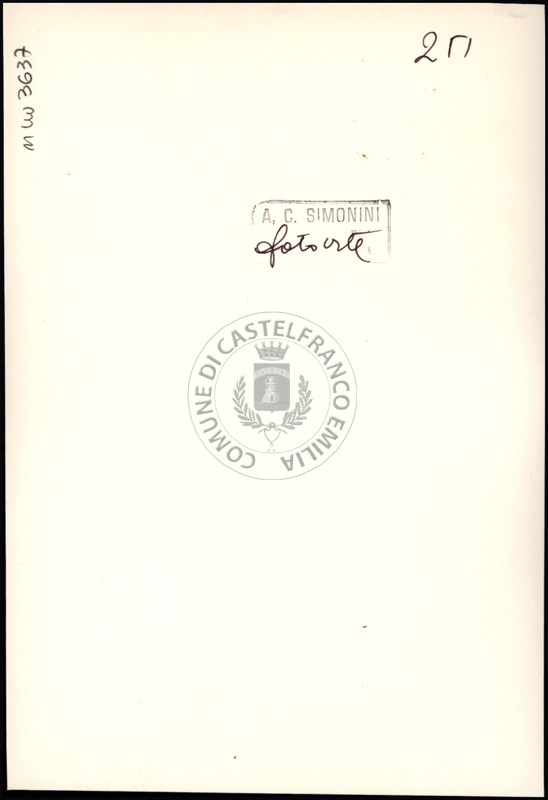 Sul verso nota manoscritta riporta: 251. Sul verso timbro ad inchiostro riporta: A.C. Simonini Arte Castelfranco Emilia. Nota manoscritta dall’Autore della raccolta, all’interno del timbro, riporta: Foto Arte.
