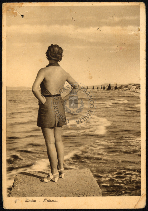 Cartolina viaggiata. Sul verso titolo riporta: Rimini, l'attesa.